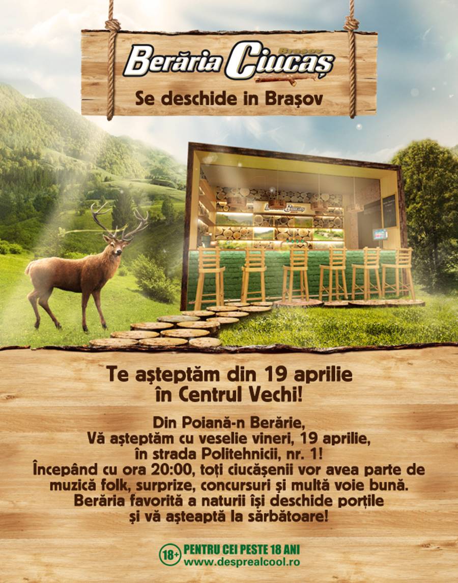 Ciucas îşi deschide vineri, 19 aprilie, prima Berarie din Brasov, pe strada Politehnicii nr. 1. Începând cu ora 20.00, toţi ciucăşenii vor avea parte de muzică folk, surprize, concursuri şi voie bună.