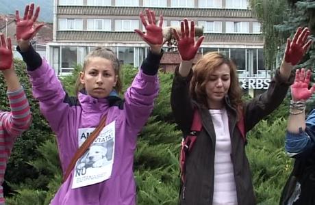 La Braşov, cu lacrimi în ochi şi cu palmele pictate cu vopsea roşie, 17 apărători „ai drepturilor animalelor” au cerut în faţa primăriei retragerea legii privind eutanasierea maidanezilor capturaţi şi nerevendicaţi nerevendicaţi. Timp de cinci minute, protestatarii au stat cu mâinile ridicate fără a scoate un cuvânt.