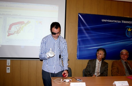 Un masterand al Universității Transilvania din Brașov, Ambarus Andor, a prezentat astăzi, în cadrul conferinţei locale a caravanei „Premiază inovaţia” un dospozitiv ce va putea fi utilizat de persoanele cu nevoi speciale, care nu cunosc limbajul semnelor. Aparatul este compus dintr-un procesor, o pereche de ochelari cu display, o mănușă tastatură, o boxă, un microfon și o baterie. Cu ajutorul acestui sistem, a explicat el, înregistrările audio pot fi convertite în text scris, iar textele scrise pot fi redate audio.