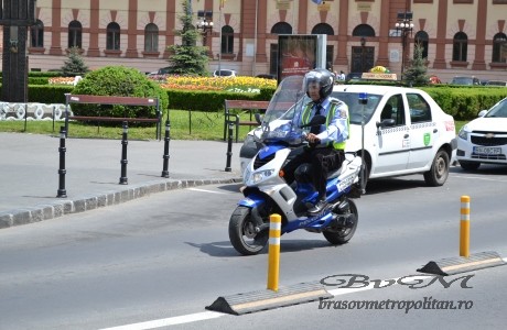 Pe străzile Brașovului au reapărut polițiștii locali pe scutere. Ei patrulează în zone precum Parcul Zoologic Brașov, Cimitirul Municipal, sau centrul vechi. În dotarea Poliției Locale sunt opt scutere, iar aproximativ 30 de agenți au permisul de conducere care le permite să circule cu ele.