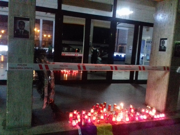 La Brașov s-au aprins lumânări într-o zonă marcată și supraveghează de Poliția TF, în fața unui drapel național, iar timp de 15 minute au sunat sirenele Poliției.