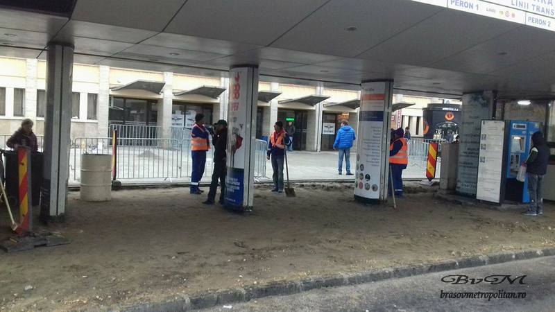 După ce în urmă cu aproape o săptămână a început refacerea trotuarului din fața Gării care aparține CFR, vineri au apărut utilajele și pe „parcela municipalității”. Potrivit purtătorului de cuvânt al Primăriei Brașov, Sorin Toarcea, și pe această porțiune se va reface pavajul, iar dacă vremea va fi favorabilă, lucrările vor dura 2 – 3 zile.