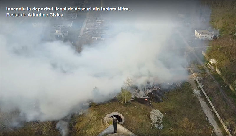 „Incendiu la depozitul ilegal de deșeuri din incinta Nitramonia, în apropierea stației de sortare a firmei de salubrizare SALCO SERV Fagaraș. Depozitul ilegal de gunoaie de pe Dealul Galațiului s-a mutat în curtea Societații Nitramonia și… «a luat foc»”, se arată într-o postare a grupului Atitudine Civică.