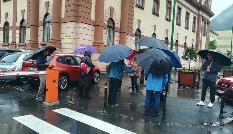 În ciuda ploii abundente, câțiva brașoveni s-au strâns la Prefectură, pentru a cere demiterea guvernului. Acest lucru ar fi posibil dacă va trecere moțiunea de cenzură depusă de partidele din opoziție. Brașovenii scandează, printre altele, „Nu vrem să fim conduși de hoți”, „PSD, ciuma roșie” sau „Hoții, hoții”. Votul moțiunii de cenzură este programat astăzi la ora 14.00,  într-o ședință comună a Camerei Deputaților și a Senatului. Pentru ca moţiunea de cenzură să fie adoptată și Guvernul să cadă sunt necesare voturile favorabile a 233 de parlamentari (deputați și senatori).