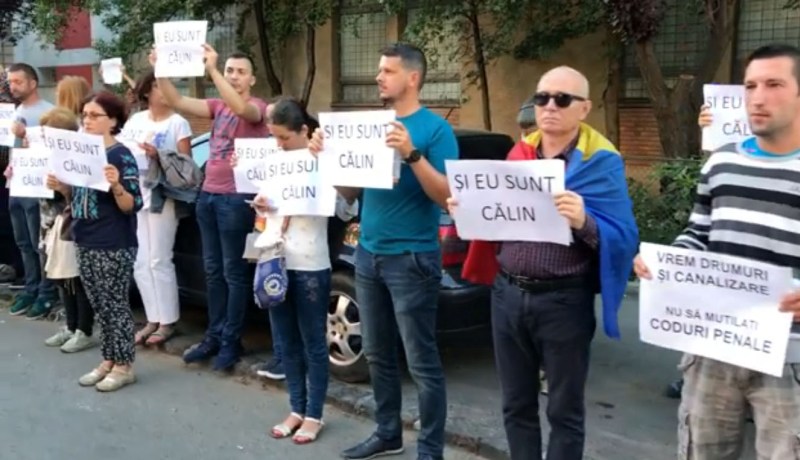 Oamenii au scos pancarde inscripționate cu mesajul „Și eu sunt Călin“ și au ținut un moment de reculegere.