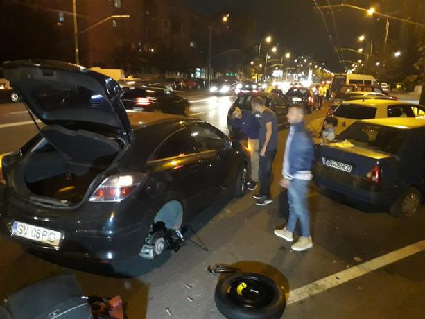 La ora 20.30, nu mai puțin de șase șoferi care au trecut cu mașina prin zonă au tras pe dreapta, cu avariile puse, unii dintre ei având și cauciucurile sparte la mașini. Șoferii au sunat la 112, însă s-au înfuriat când un prim echipaj al Poliției Locale, pe care îl chemaseră să constate problema, a plecat mai departe.