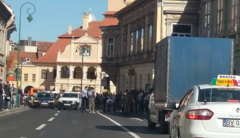 Un echipaj SMURD a intervenit în jurul orei 13.45 în Centrul Braşovului, pentru a acorda primul ajutor unei femei implicate într-un grav accident de circulaţie. Potrivit purtatorului de cuvânt al Inspectoratului pentru Situaţii de Urgenţă Braşov, plt. maj. Luiza Dănilă, victima este inconştientă. Accidentul a avut loc pe strada George Bariţiu (continuarea străzii Mureşenilor, după Piaţa Sfatului), chiar în faţa sediului PSD.