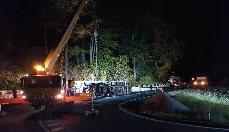 Un camion s-a răsturnat în cursul nopții, pe DN 1, în zona serpentinelor de dintre Predeal și Timișu de Sus. Accidentul s-a produs în jurul orei 0.00, iar camionul a fost ridicat în jurul orei 2.00. În cele două ore cât a durat ridicarea de pe carosabil, traficul rutier a fost perturbat. Ulterior, vehiculul a fost luat din zonă, acțiune ce s-a încheiat în jurul orei 3.30, iar până atunci s-a circulat pe un singur fir.