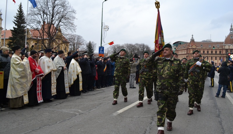Ora 10.30: Ceremonia militară și religioasă: întâmpinarea prefectului județului Brașov, însoțit de comandantul Garnizoanei Brașov, prezentarea onorului și salutul drapelului de luptă al UM 01107 Brașov, iar fanfara militară și garda de onoare vor intepreta Imnul Național al României. Drapelul Național al României va fi adus la sol de către un parașutist lansat de la mare înălțime, după care va fi oficiat serviciul religios.