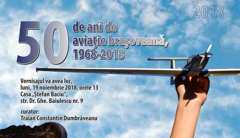 Muzeul „Casa Mureșenilor” Brașov găzduieşte luni, 19 noiembrie 2018, ora 13.00, la Casa „Ștefan Baciu” din str. Dr. Ghe. Baiulescu nr. 9, vernisajul expoziției 50 de ani de aviație brașoveană, 1968-2018. Expoziția prezintă activitatea derulată de-a lungul a cincizeci de ani de către Întreprinderea de Construcții Aeronautice Ghimbav – Brașov, după anul 1991 – SC IAR SA.