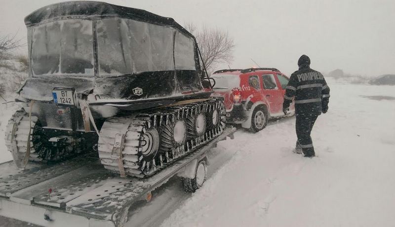 Şenilata care a intervenit în sprijinul echipajului de Ambulanţă, a venit de la Secția din Predeal a ISU Brașov. Autospeciala a parcurs drumul greu practicabil, unde ambulanța nu a putut ajunge.  După mai bine de o oră şi jumătate, şenilata a dus pacientul până la echipajul de Ambulanţă, fără probleme, de unde a fost, apoi, transportat la spital.