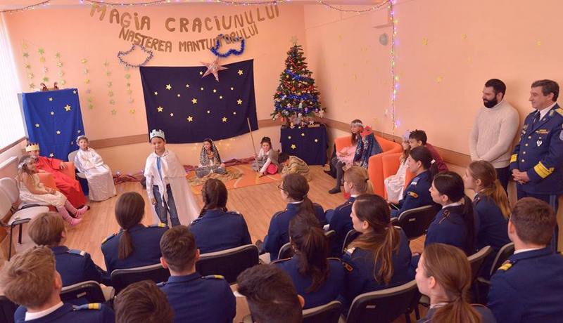 FOTO. Copiii Centrului „Astra“ și studenții Academiei Forțelor Aeriene „Henri Coandă“ și-au dedicat reciproc colinde și scenete de Crăciun