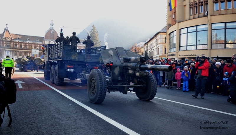 Dacă la București au fost în stradă blindatele de ultimă generație ale Armatei Române, dar și un lansator de rachete Patriot, la Brașov, pe Bulevardul Eroilor puteau fi văzute multe vehicule militare din anii ’80. Situația a fost salvată de ISU sau de Poliție, care au scos în stradă vehicule de ultimă generație.