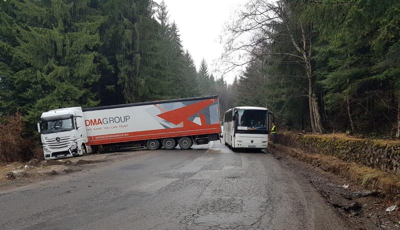 Șoferul unui TIR care circula azi la ora prânzului, pe DN 73A, a blocat pentru aproape două ore circulația în zona Pârău Rece, după ce a reușit performanța de a pune vehiculul de-a curmezișul drumului.