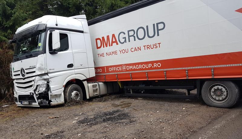 Potrivit purtătorului de cuvânt al Direcției Regionale de Drumuri și Poduri, Rebert Elekes, incidentul s-a produs după o manevră necalculată a șoferului de TIR care a încercat să întoarcă autotrenul și a rămas împotmolit cu capul tractor în pământul de pe marginea drumului.
