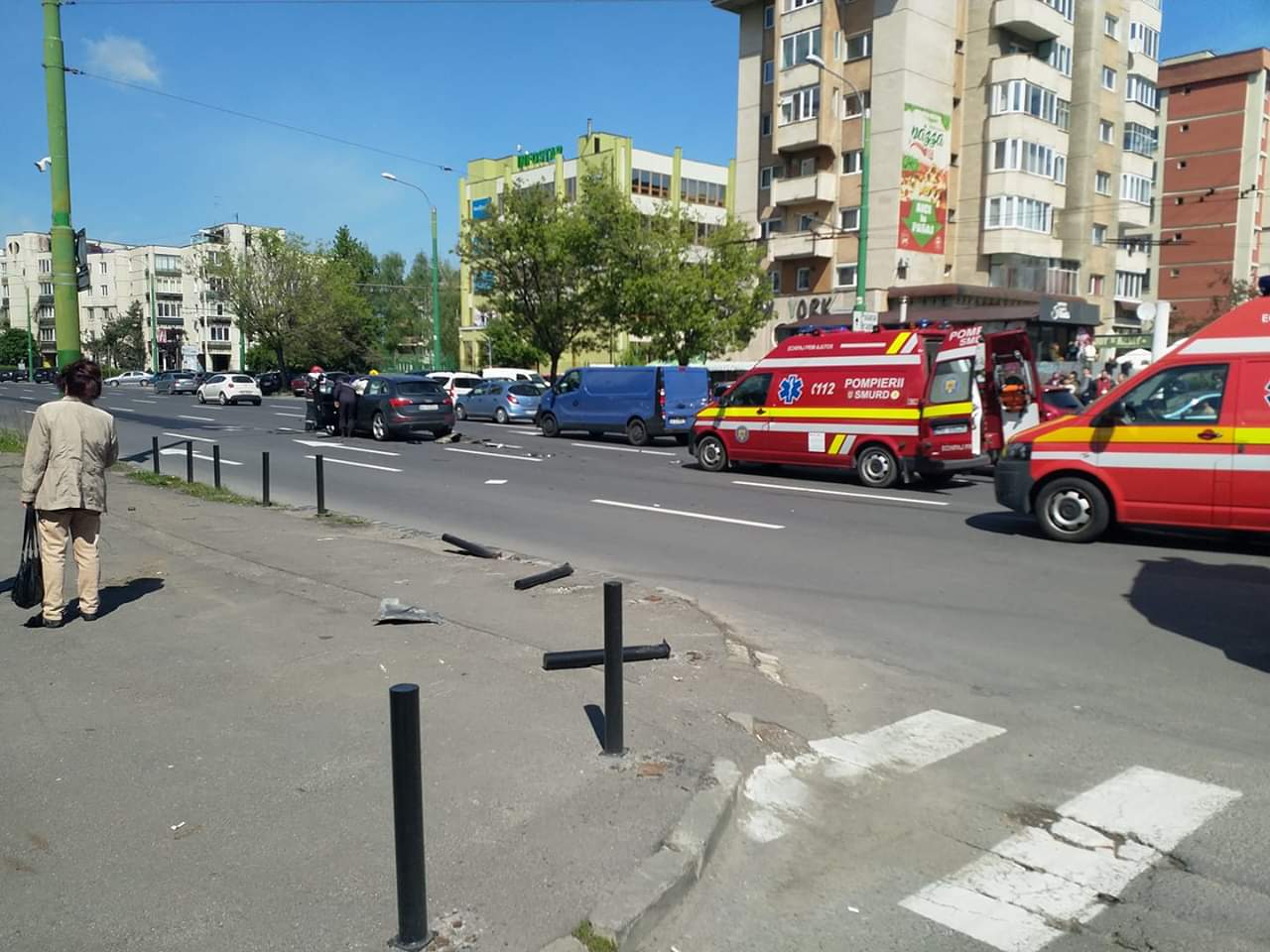 Doua autospeciale cu apă și spumă și două echipaje SMURD au intervenit în jurul orei 11.30 pe bulevardul Mihail Kogălniceanu, în apropierea intersecției cu bulevardul Victoriei, acolo unde doua autoturisme au intrat în coliziune.
