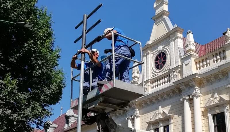 Începând din acest weekend, clădirea Primăriei va fi iluminată arhitectural. Montarea instalației a început de acum aproximativ o săptămână, iar acum sunt în curs de montare proiectoarele, după care se vor face ultimele reglaje.