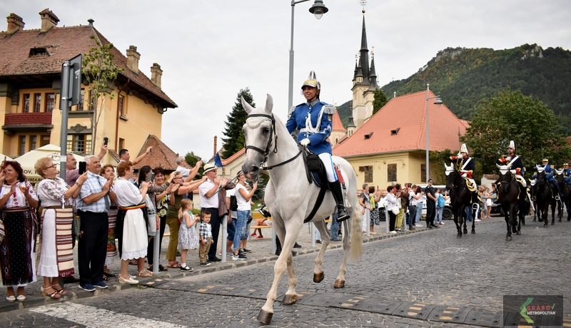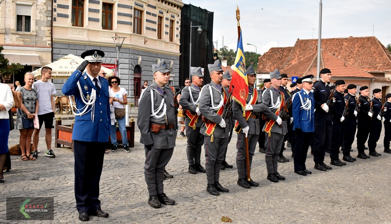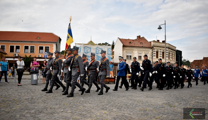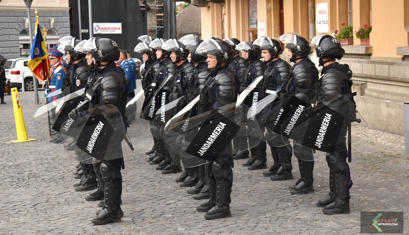 Apoi, în piață, s-a a avut loc un ceremonial oficial, care a culminat cu defilarea unităților de jandarmi. La eveniment a participat prefectul județului Brașov, Marian Rasaliu, însă nu au fost văzut nici un reprezentant al Consiliului Județean Brașov sau al Primăriei Brașov.