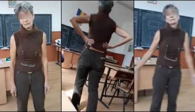Profesoara încearcă să o potolească pe elevă, însă fără succes, fata continuând să cânte, să râdă şi să-şi bată joc de femeie, de faţă cu restul colegilor.