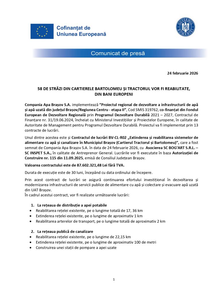 58 de străzi din cartierele Bartolomeu și Tractorul vor fi reabilitate, din bani europeni