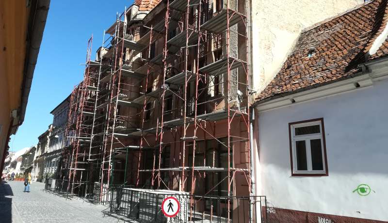 O casă de pe strada Michael Weiss, care stătea să cadă oricând peste trecători, a intrat în reparații prin programul Primăriei Brașov