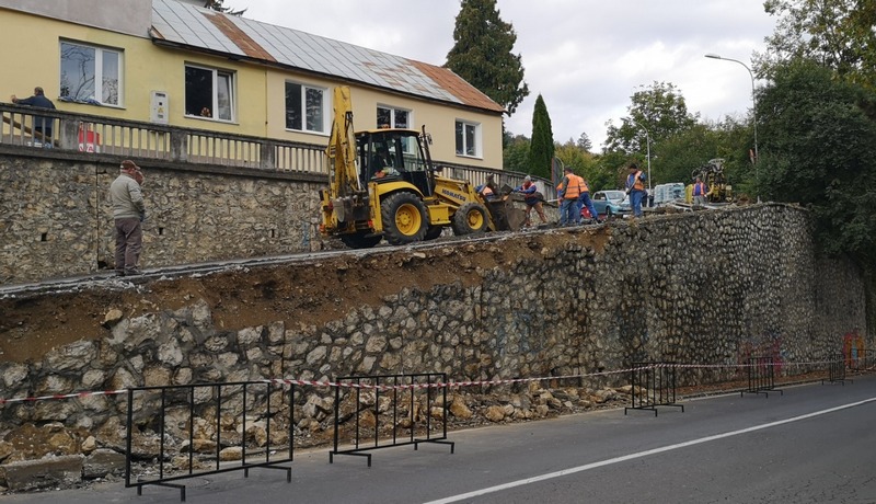 Consolidarea zidului a început încă de luni, iar astăzi a fost desființat parapetul pietonal. Se va începe forarea de piloți de susținere, pentru punerea în siguranță a malului. Zidul a fost construit în anii ’70, iar expertiza efectuată a arătat că zidul prezenta risc de prăbușire. Lucrarea este mai complicată decât părea inițial, deoarece zidul a fost construit doar din bolovani, fără perete dublu, iar normele actuale impun măsuri de siguranță suplimentare.