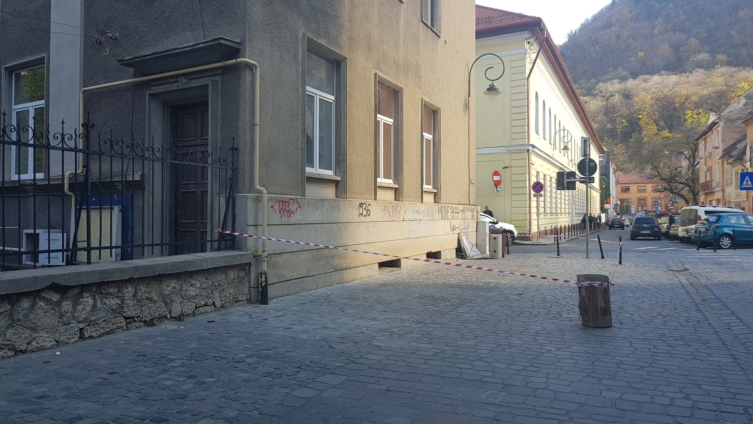 La această ora, perimetrul din apropierea clădirii a fost marcat, astfel încât trecătorii să nu se apropie prea mult de clădire.