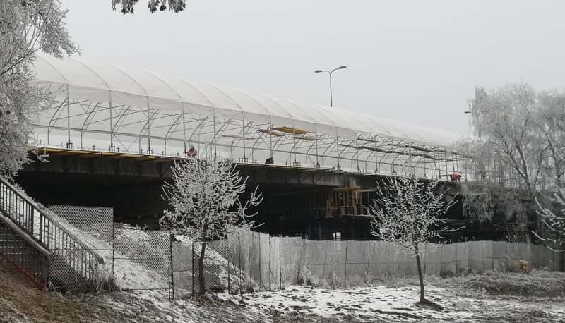 Șantierul este unul atipic, fiind deschis și iarna. De altfel, pentru a putea lucra în această perioadă a anului, constructorul a cumpărat un cort cu lungimea de 60 m, dar, în cursul acestei ierni, în „seră” nu au fost prea mulți oameni.