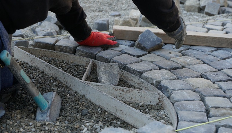 Reprezentanții constructorului au precizat că cele mai complexe lucrări din această amenajare sunt cele de montare a pietrei naturale, care se va face sub forma unui arc de cerc.