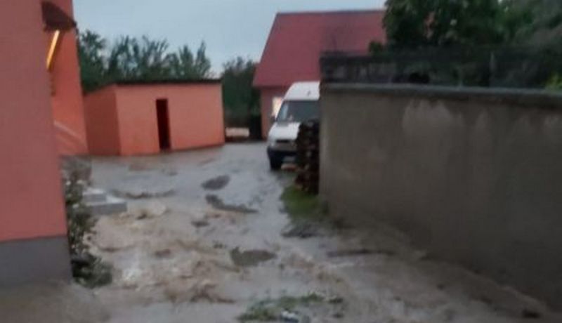 FOTO&VIDEO. Inundaţii în gospodăriile şi pe drumurile din Teliu. ISU intervine pentru scoaterea apei
