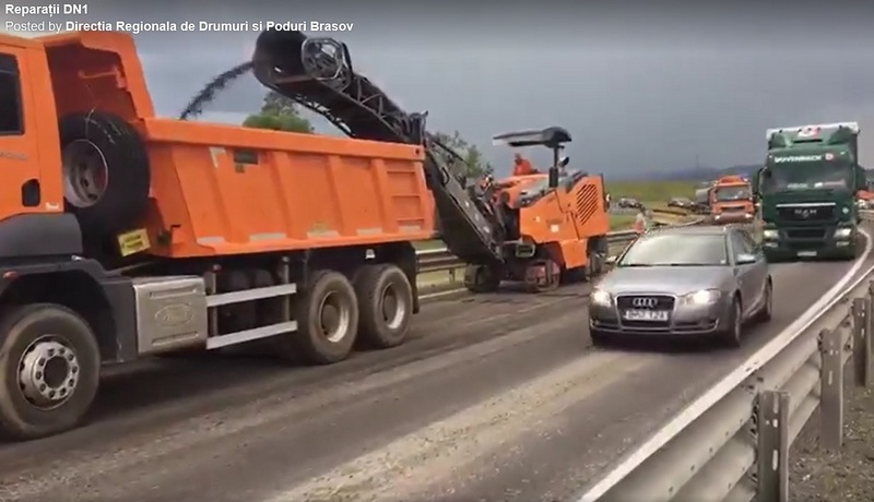„Secția Producție din cadrul DRDP Brașov lucrează în aceste zile la frezarea stratului de uzură pe o porțiune de aproximativ 3 km după care va urma așternerea unui strat nou de asfalt”, au anunțat reprezentanții DRDP Brașov.