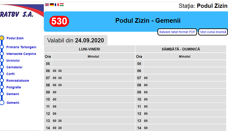 RATBV a anunțat că de joi, 24 septembrie 2020,   își extinde serviciile de transport public de călători în zona metropolitană Brașov prin înființarea și darea în exploatare a liniei 530, Brașov – Tărlungeni, cu traseu între zonele Gemenii, din Brașov și Pod Zizin, din Tărlungeni.