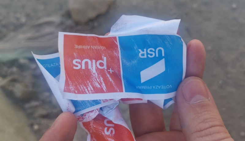 Reprezentanţii Alianţei USR PLUS spun că nici măcar nu a tipărit astfel de colante în această campanie.
