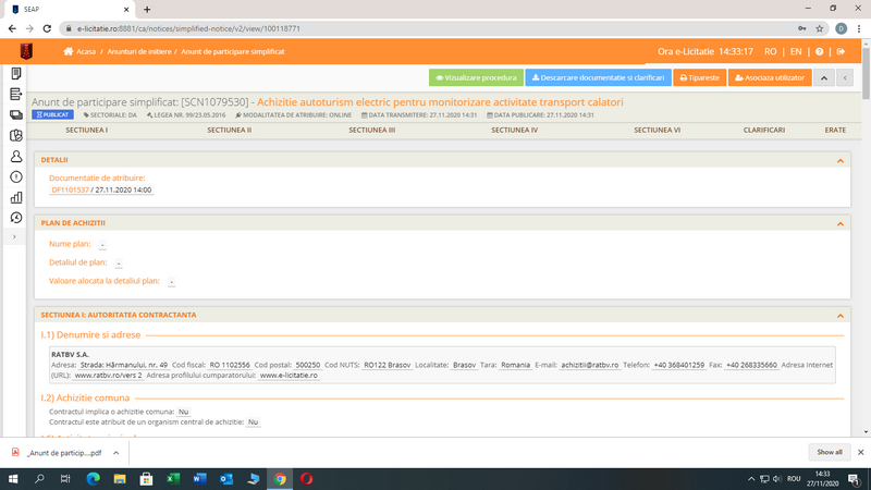 Deoarece i-au fost deja aprobate documentațiile necesare pentru înscrierea în programele ”Rabla Plus” și ”Rabla Clasic”, RATBV va achiziționa autoturismul electric nou prin intermediul unui leasing financiar, pe o perioadă de 36 de luni, valoarea totală estimată a contractului fiind de 130.000 lei, plus TVA. Una dintre cele mai importante condiții impuse de cumpărătorul RATBV se referă la faptul că autoturismul va trebui să aibă o autonomie de minim 300 de km în standard WLTP.