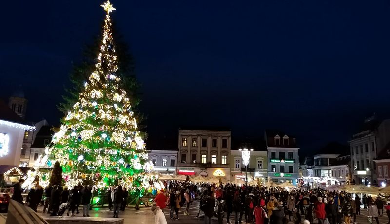 În Piața Sfatului, aglomerație de parcă era „aprinderea bradului”. Mulți oameni veniți să vadă bradul, să facă fotografii, să se miște. Cei mai mulți dintre ei aveau mască, dar densitatea de oameni din piață era destul de mare.