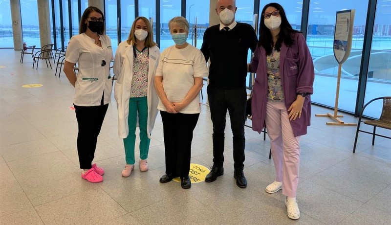Prefectura Brașov a anunțat că luni dimineața, la CATTIA, a fost vaccinată împotriva COVID-19 prima persoană inclusă în a doua etapă de vaccinare. Este vorba de o doamnă,  (foto centru) de peste 65 de ani, care a fost programată pentru data de 18 ianuarie, ora 8.00 la Centrul de vaccinare de la CATTIA, aceasta fiind și ora de deschidere a centrului de vaccinare.