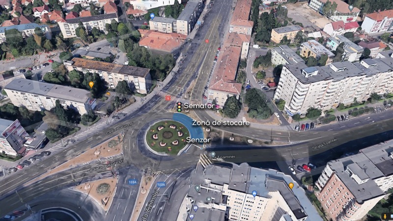 De asemenea, la ieşirea din Centrul Civic, în zona „Trei alimentare”, va fi amplasat un semafor, în sensul giratoriu. Acesta va stoca în intersecţia cu strada Toamnei şi cea a bulevardului 15 Noiembrie, a maşinilor care vin dinspre Calea Bucureşti sau str. Zizinului. „În acest moment, autovehiculele care întorc în sensul giratoriu, blochează accesul celor de pe 15 Noiembrie atât înspre str. Zizinului, cât și spre Calea București, ceea ce creează blocaje foarte mari la orele de vârf. Pentru a se evita blocarea sensului giratoriu, în acest segment vor fi montați senzori de trafic, astfel încât, în momentul în care numărul mașinilor stocate ajunge la limită, automat se va face verde pentru autovehiculele din sens. Acest semafor va fi corelat cu cel de pe 15  Noiembrie”, a explicat Sorin Toarcea, purtătorul de cuvânt al Primăriei Braşov.