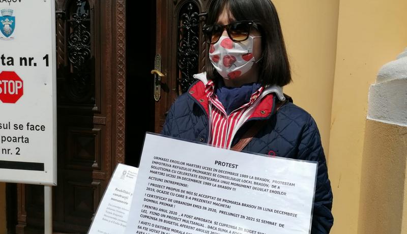 Sora eroului martir Nicuşor Vlase, ucis în decembrie 1989 la Brașov protestează zilnic în fața Primăriei, începând de luni, încercând să determine Municipalitatea să respecte promisiunea de a amenaja un monument dedicat eroilor Revoluției. Ieri, Ioana Ortensia Vlase se afla tot în fața Primăriei, după mai multe zile în care spune că a fost ignorată de autorități.