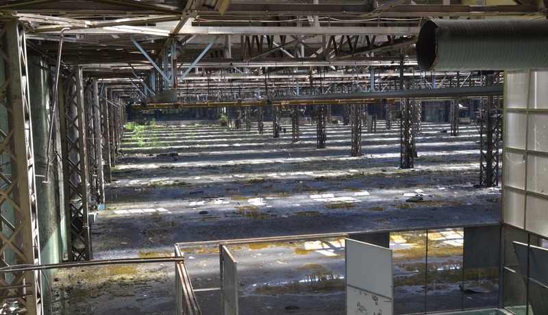 De asemenea, se „vede” și paragina: vată de sticlă transformată într-o pastă albicioasă sau plante care încep să crească în halele care, nu cu foarte mult timp în urmă, erau adevărate furnicare.