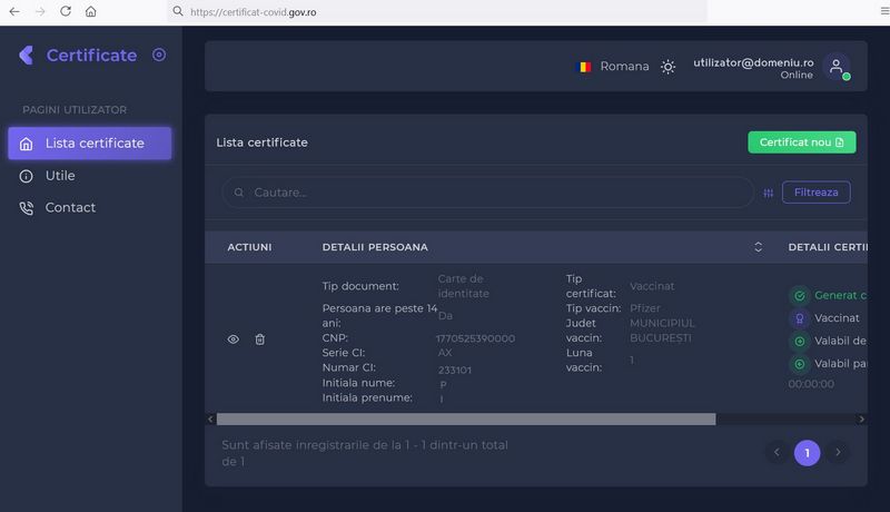 3. Timpul de generare a certificatului poate fi de la câteva secunde, până la o oră, în funcție de numărul de solicitări.