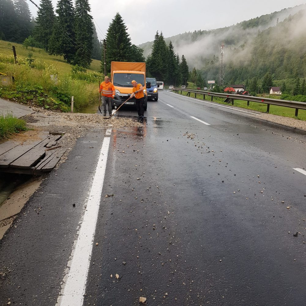 Potrivit Direcției Regionale de Drumuri și Poduri Brașov, ploile au cauzat unele probleme și la Predeal, tot pe DN1, între km 138+200 – 139+350. Aici, angajații Direcției au intervenit în această dmineață pentru a îndepărta aluviunile de pe carosabil, însă nu a fost nevoie de închiderea traficului.