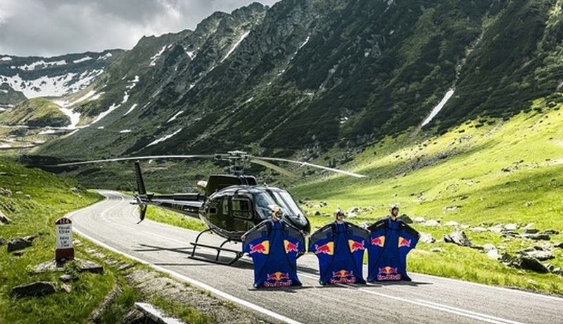 Acest tip de zbor a fost primul făcut peste serpentinele Transfăgărăşanului, unde doar experienţa miilor de salturi ale sportivilor au putut ţine sub control, la coborâre de peste 4.000 de metri, costumele nepropulsate mecanic.