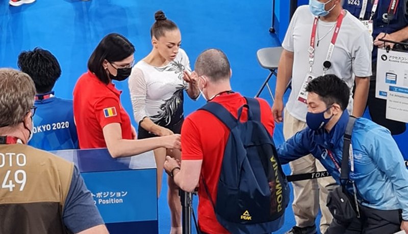 În vârstă de 25 ani, Larisa Iordache s-a accidentat la piciorul stâng în semifinalele la bârnă la JO Tokyo. Diagnosticată cu entorsă metatarsiană la piciorul stâng, gimnasta a făcut eforturi supraomenești pentru a putea concura în finala de pe azi, deși nu s-a putut antrena normal în ultimele zile.