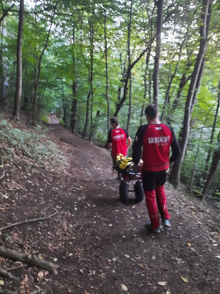 Aceasta a fost imobilizată pe targa lopată şi transportată până la baza muntelui, de unde a fost preluată de către un echipaj SMURD.