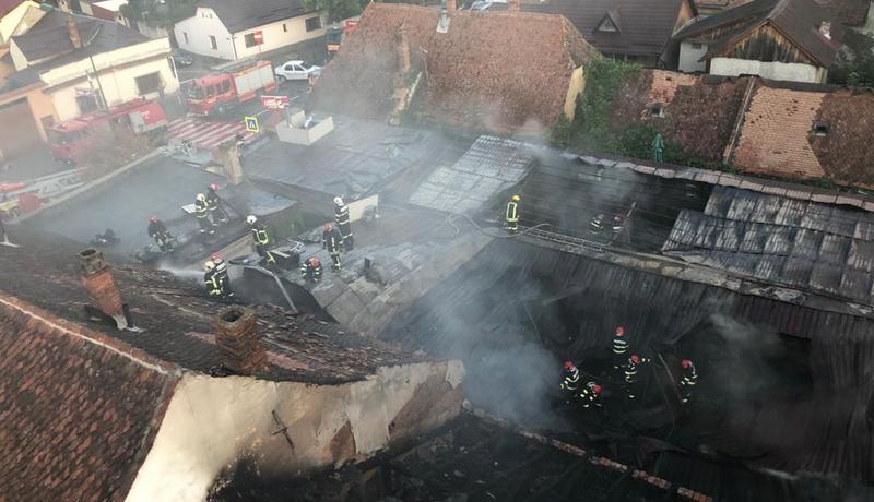 Incendiul s-a produs, de fapt, la una dintre clădirile alăturate, unde se află un depozit de încălțăminte.