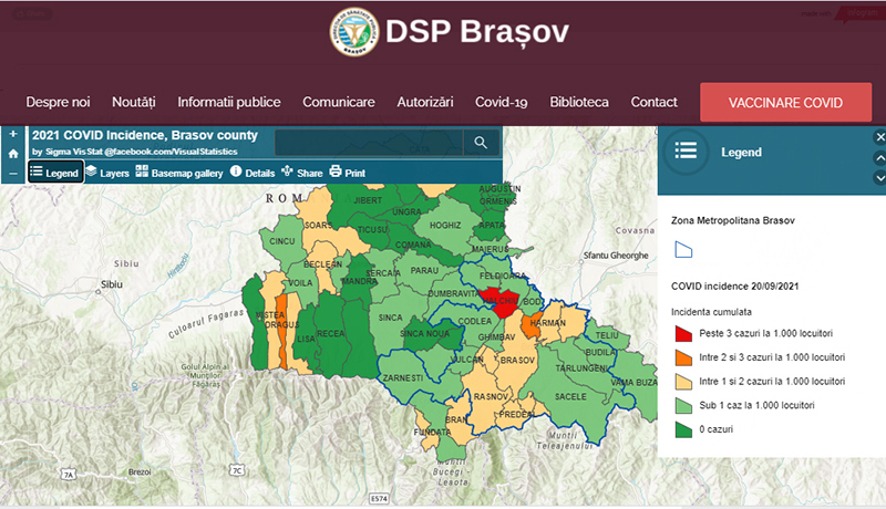 În ceea ce privește municipiul Brașov, acesta a ajuns în 20 septembrie la o incidență de 1,50 cazuri la 1.000 de locuitori (440 cazuri, la o populație de 293.369 de persoane), asta după ce în 19 septembrie, incidența era de 1,40 cazuri/1.000 de locuitori (674 de cazuri active la o populație de 649.981 de persoane).