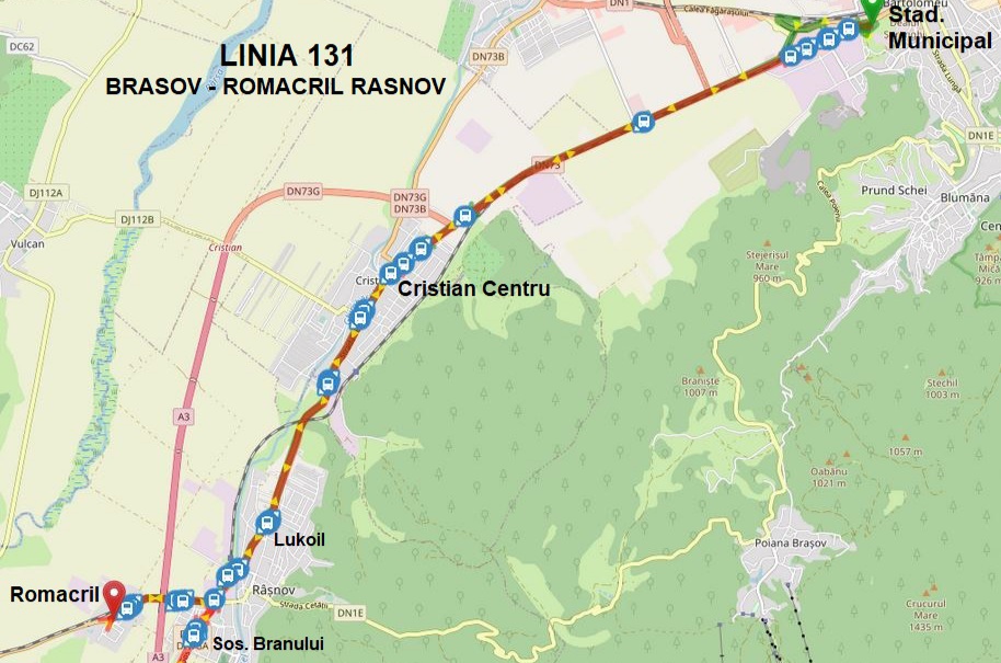 În zilele lucrătoare, RATBV va efectua 13 curse (dus/întors) pe linia 131, cu primele plecări la orele 04.50 din Stadionul Municipal (Braşov) şi 5.20 din capătul Romacril (Râșnov). În zilele de sâmbătă, duminică și sărbători legale se vor realiza 11 curse (dus/întors), cu primele plecări la orele 6.00 din Stadionul Municipal (Braşov) şi 6.40 din capătul de linie Romacril (Râșnov).