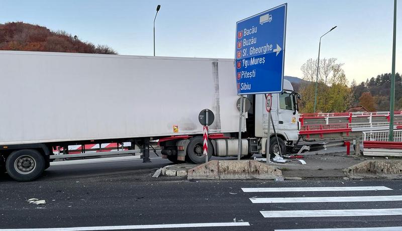 Un incident rutier a avut loc în această dimineață la intrarea dinspre Săcele în Brașov, la intersecția cu Varianta Ocolitoare a municipiului. Un vehicul de mare tonaj, cu numere de Prahova, s-a înfipt într-unul dintre parapeții de pe marginea drumului. Nu există victime, ci doar pagube materiale, atât la zona de delimitare a părții carosabile, cât și la TIR.