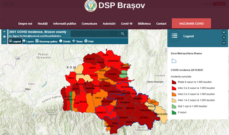 INCIDENȚĂ COVID-23.10.2021. Municipiul Brașov a trecut de 12/1.000, iar comuna Sânpetru se apropie de 15/1.000. Șapte localități din județul Brașov au incidență mai mare de 11 la mie