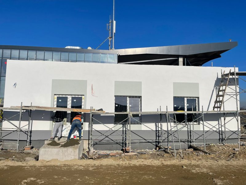 „Gospodăria de apă este într-un progres avansat, clădirea energetică este finalizată şi în momentul de faţă se lucrează la interior pentru dotarea cu aparatura necesară. Cele două posturi de control acces sunt şi ele construite. Remiza PSI este în lucru, aici urmând să fie aduse utilajele de intervenţii pe care le avem achiziţionate. Drumul tehnologic care face legătura între terminal şi remiza PSI a ajuns aproape de finalizare. Lucrările la drumul de acces la aeroport dinspre Ghimbav s-au încheiat, în timp ce la parcarea din faţa terminalului încă se lucrează. De asemenea, numeroase utilaje sunt prezente pe şantierul de construcţie a drumului perimetral”, a explicat Adrian-Ioan Veştea.